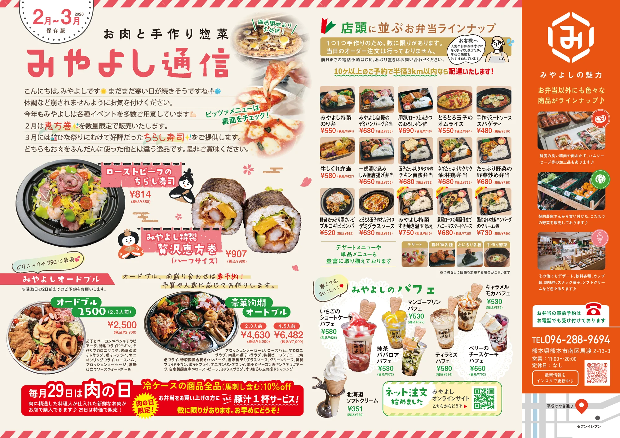 和牛を知り尽くした店主が鮮度抜群の九州産黒毛和牛を一頭丸ごと仕入れ、最高に美味しい肉料理を追及。 質とボリュームに自信アリの肉弁当や鮮度抜群の精肉がリーズナブルな価格でご提供しています。